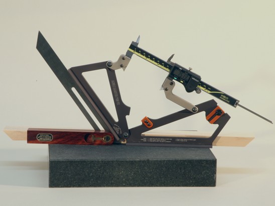 What’s not to like about it? Not a lot, really. Although it feels very sturdy in the hand, I was always nervous that I was going to drop it onto a concrete floor. (Of course, part of that could be the fact that it was just on loan.) My other very minor complaints have to do with the caliper: The inside-measurement jaws at the top are awfully pointy. And when the caliper is opened wide, the depth bar (the skinny rod that comes out the tail end) is both vulnerable and hazardous. Of course, if you’re going to dedicate a caliper to the AngleMaster Pro (and you should), then you can grind off all of the pointy bits.